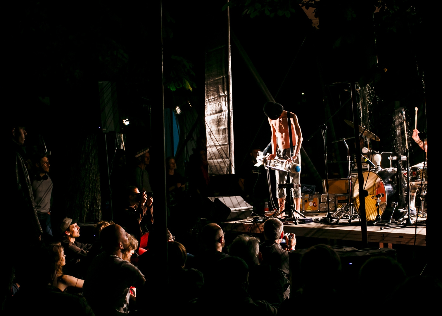On Saturday evening in the courtyard of the Muzeum Sztuki at Więckowskiego 36, it will be possible to see how ‘densely’ two instruments can sound. Especially when one of them is a set of drums, and the other one is a baritone string bullet project of an own design. Hereby you are invited to the concert of BNNT group!