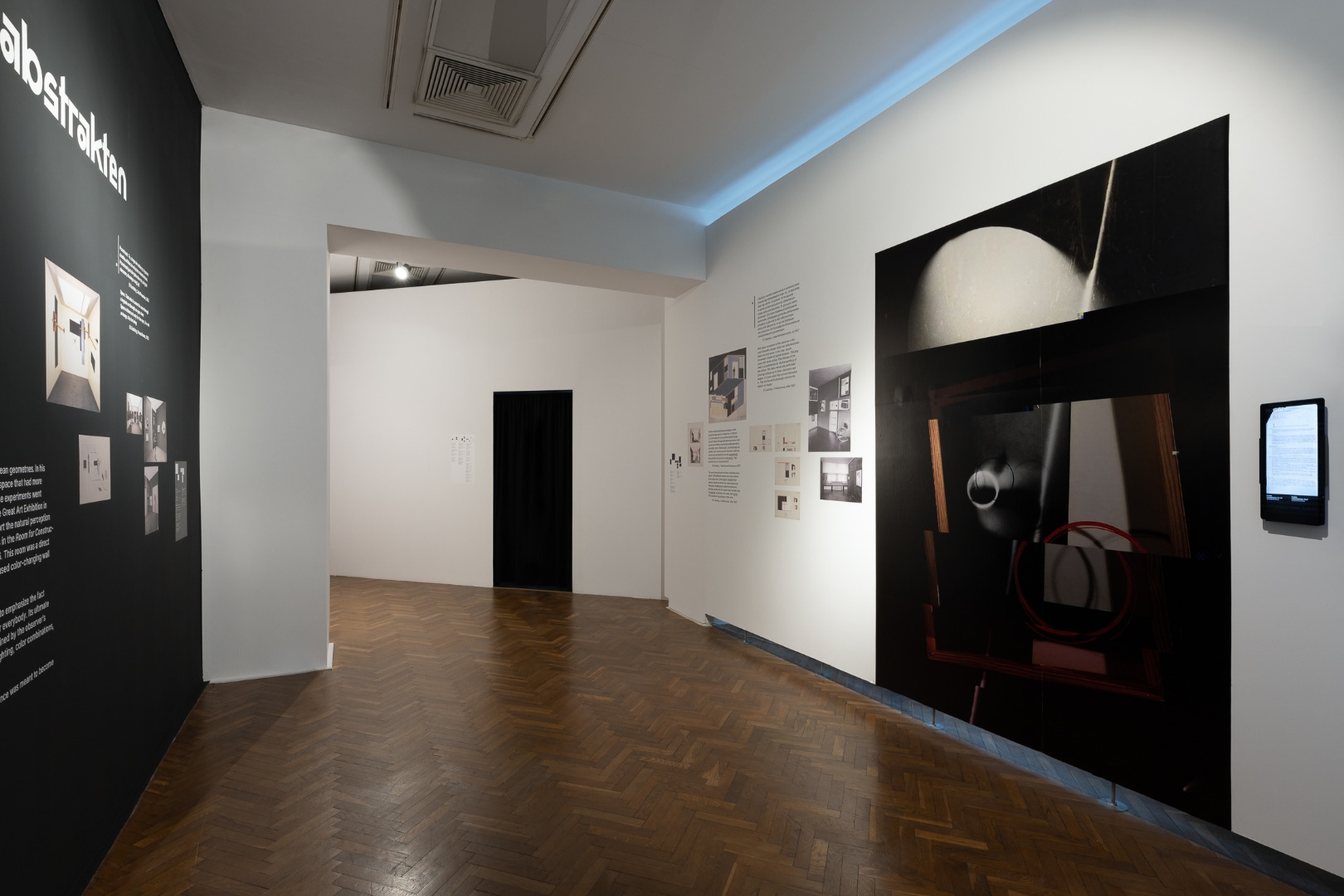 Kabinett der Abstrakten (Gabinet abstrakcji) został zaprojektowany przez rosyjskiego konstruktywistę El Lissitzkiego na zamówienie Aleksandra Dornera, ówczesnego dyrektora hanowerskiego muzeum. Sala była efektem wcześniejszych eksperymentów artysty, wynikających z jego zainteresowań awangardowym wystawiennictwem. Z jego doświadczeń wynikało, że zmiana światła, faktury ścian, zestawień kolorystycznych i sposobu rozmieszczania form w przestrzeni, może przyczynić się do poszerzenia zdolności percepcyjnych widza i zachęcić go do aktywności. Wprowadzenie do hanowerskiego Kabinnet der Abstrakten szeregu rozwiązań architektonicznych i użycie nietypowych materiałów miało kojarzyć się widzom ze scenerią nowoczesnych metropolii, a także pozwalało doświadczyć płynności, nieokreśloności i wielowymiarowości – cech charakteryzujących sztukę abstrakcyjną.