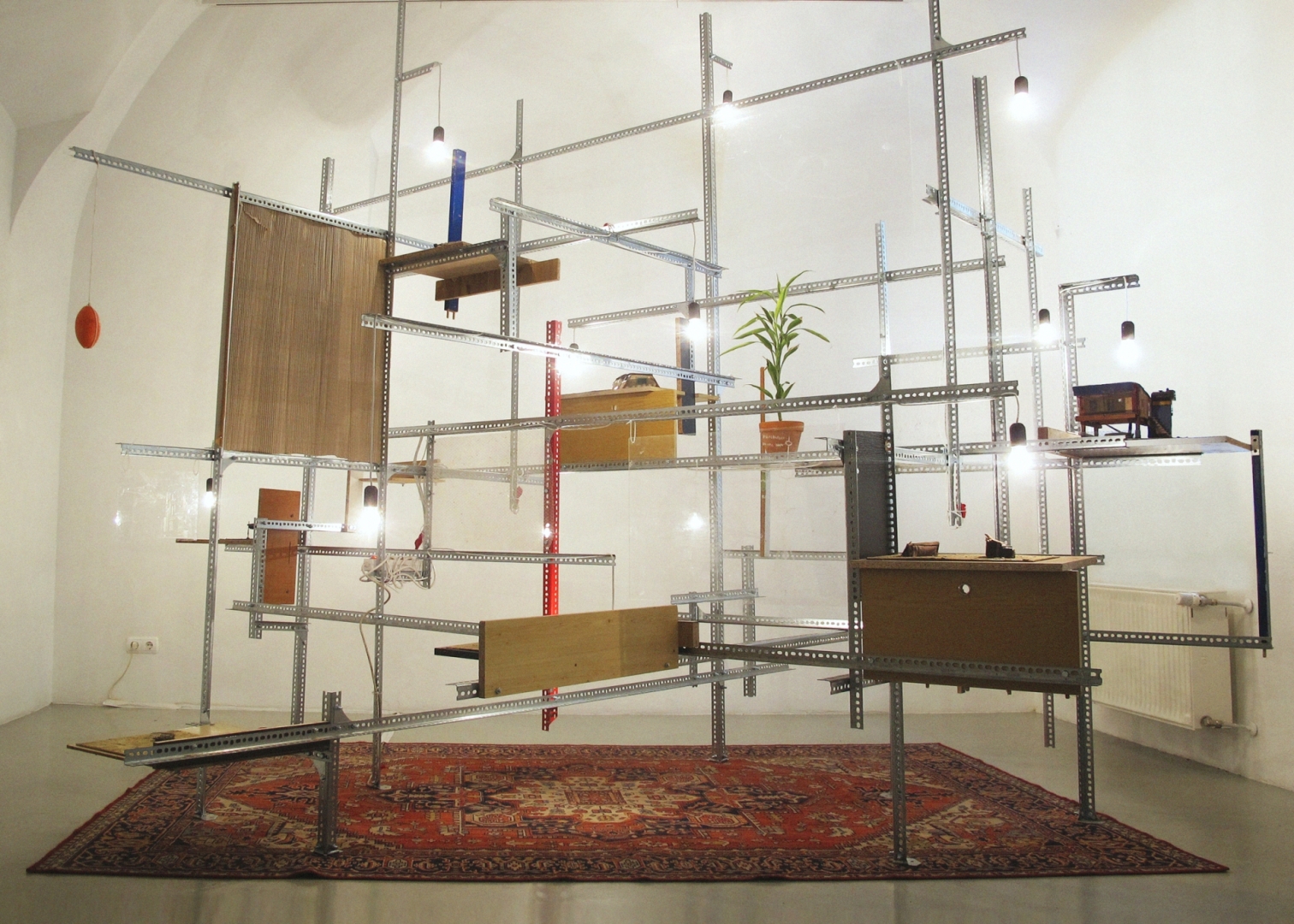 The exhibition designed by Tamás Kaszás resembled presentations of ethnographic collections. Exercises in Autonomy included individual works of the artist, as well as works produced with Anikó Loránt (ex-artists' collective) since the beginning of the 21st century, and work prepared especially for the Muzeum Sztuki in Łódź. The exhibition consisted of two parts, titled Archeology of the Future and Auto-anthropology. In the first section, works of art were displayed as archeological findings, speculative traces of a (future) community, which managed to survive the destruction of modern civilization. The recycled remains of the past exist among objects produced as a result of new architectural, technological, and farming practices, which have developed in the wake of the disappearance of mass industrial production, consumption and modern public infrastructure. Auto-anthropology touches upon these issues on a smaller social scale: by displaying exercises in the autonomy of living and ecology of art through building a familial artistic collective (ex-artists' collective). The collective's working methods include the use of easily accessible materials and technologies, as well as learning self-sufficiency. The expected result is an integration of the formal, productional and theoretical aspects of their work.