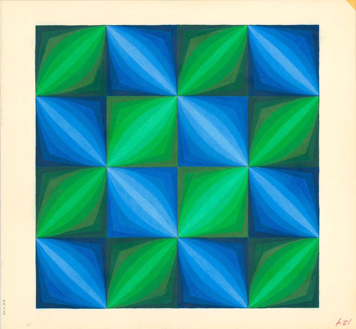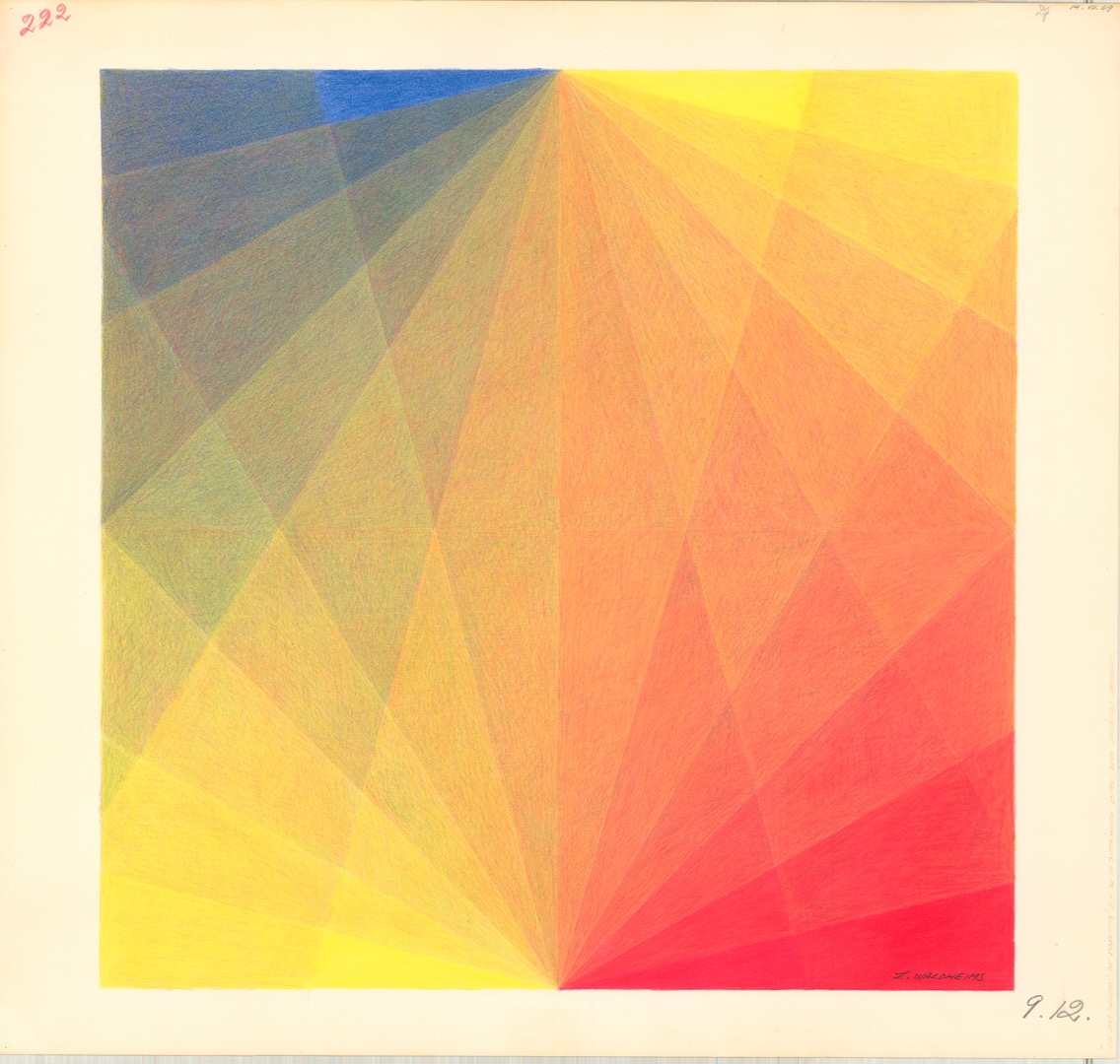 The artists in this exhibition have picked up different threads from Szpakowski’s work, interests and language and brought them to new contexts. The Latvian exile artist Zanis Waldheims, who was based in Canada, has tried to understand the world around him and the inner workings of human behavior through the production of numerous works of geometric abstraction. Instead of presenting his research in writing, he gradually shifted towards visual depictions, realizing that the only meaningful way to express his findings lay beyond words. The artist Janek Simon has been concerned with the rise of nationalism and xenophobia in our contemporary societies. In trying to argue for a new inclusive universalism through form, he has been working with AI-generated algorithms, combining folkloric motifs from India, Africa, South America, Europe, and Poland to produce abstract mosaics.