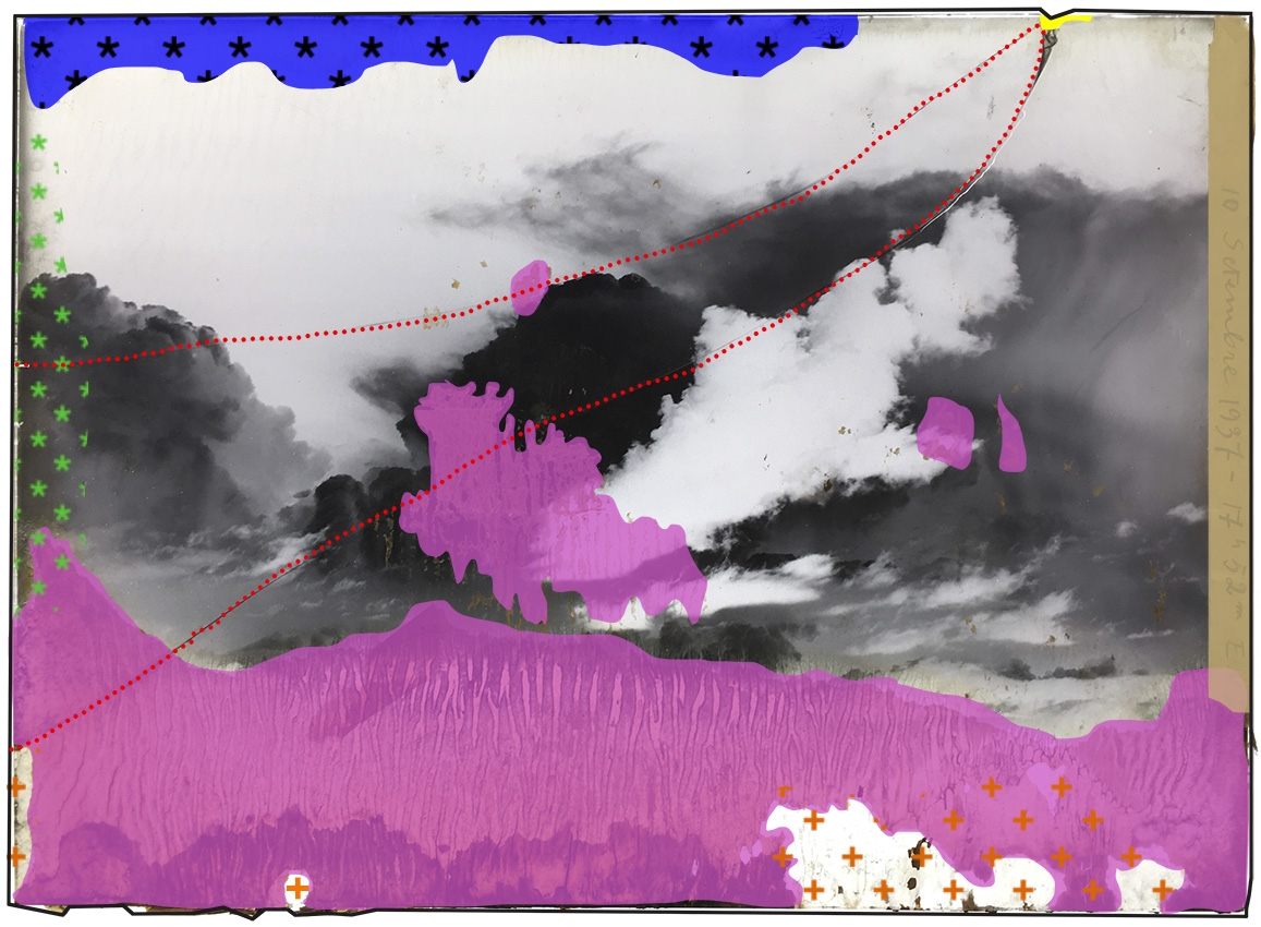 Looking at the connections between early scientific exploration, photography and art—a constellation of fields to which Szpakowski’s practice was also connected—the artist Andrés Galeano rehabilitates meteorological glass plate negatives from the first Catalan Meteorological Service (1921–1939), producing condition reports detailing the damage done to them by time and in the course of their confiscation by, and negligent treatment at the hands of, Franco’s regime.