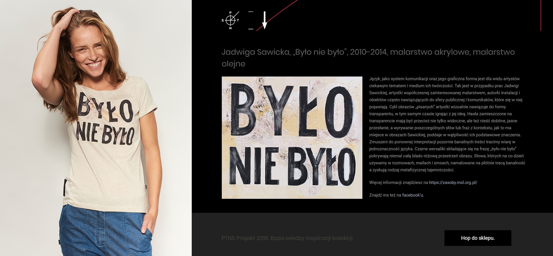Awangarda, sztuka współczesna, sztuka nowoczesna - to sformułowania, które wciąż onieśmielają niespecjalistów. Linia specjalnie zaprojektowanej odzieży oraz biżuterii (we współpracy z Animakingdom), inspirowana zbiorami prac Muzeum Sztuki wydała się świetnym sposobem mediowania progresywnych zjawisk w sztuce XX i XXI wieku. Pomysł współpracy między Muzeum a Pan tu nie stał zasadzał się na odnalezieniu pomostu między dziedzinami bliższymi, „oswojonymi” takimi jak moda, projektowanie użytkowe czy design, a sztuką awangardową i najnowszą. We współpracy z PTNS zależało nam jednak nie tylko na dobrze zaprojektowanym efekcie końcowym, ale przede wszystkim na aspekcie edukacyjnym i wykorzystaniu kolekcji do rozpowszechniania informacji o sztuce znajdującej się w zbiorach muzeum. Firma zaproponowała system kodów ukrytych w metkach ubrań i odszyfrowania ich dzięki kartonowemu dekoderowi dołączonemu do zakupu. Po wpisaniu kodu na dedykowanej platformie edukacyjnej www.projekt.ptns.eu klient dowiaduje się jakie dzieło stanowiło inspirację dla powstałego produktu, może o nim poczytać lub przejść bezpośrednio do strony zasoby.msl.org.pl, bazy zdygitalizowanych dzieł z kolekcji muzeum, po bardziej specjalistyczne informacje.